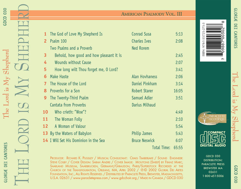 On SaleGloriae Dei CantoresAmerican Psalmody, Vol. 3: The Lord Is My ShepherdThe Lord Is My Shepherd - The Lord Is My Shepherd is the third volume in the American Psalmody series, a distinguished...