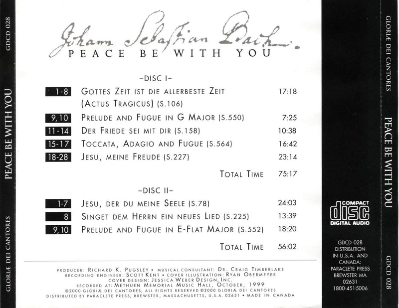 Gloriae Dei CantoresPeace Be With YouPeace Be With You - Gloriae Dei Cantores released this double CD set of sacred choral cantatas, motets, and works for organ...