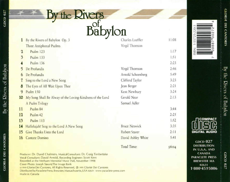 Gloriae Dei CantoresAmerican Psalmody, Vol. 2: By the Rivers of BabylonBy the Rivers of Babylon - Following on the success of Make His Praise Glorious, Gloriae Dei Cantores continued a distinguished series...
