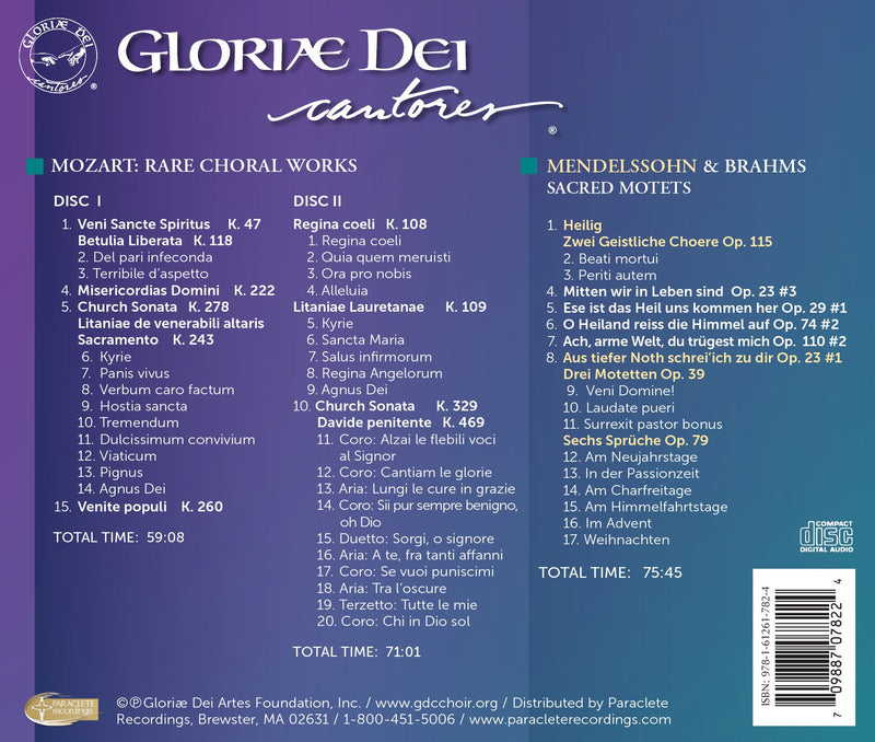 On SaleGloriae Dei CantoresMENDELSSOHN & MOZART SETMendelssohn & Mozart Set Box Set Gloriae Dei Cantores, Gloriae Dei Cantores Schola, Wolfgang Amadeus Mozart, Felix Mendelssohn, Johannes Brahms. Mendelssohn &...