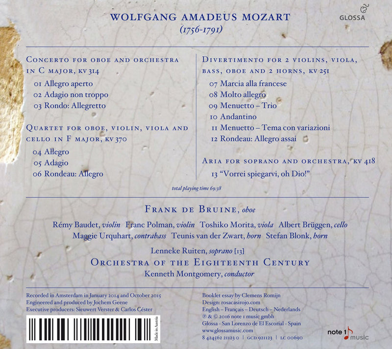 GlossaMozart: The Oboe Concerto & Other Works for Oboe / Bruine, Orchestra of the 18th Century