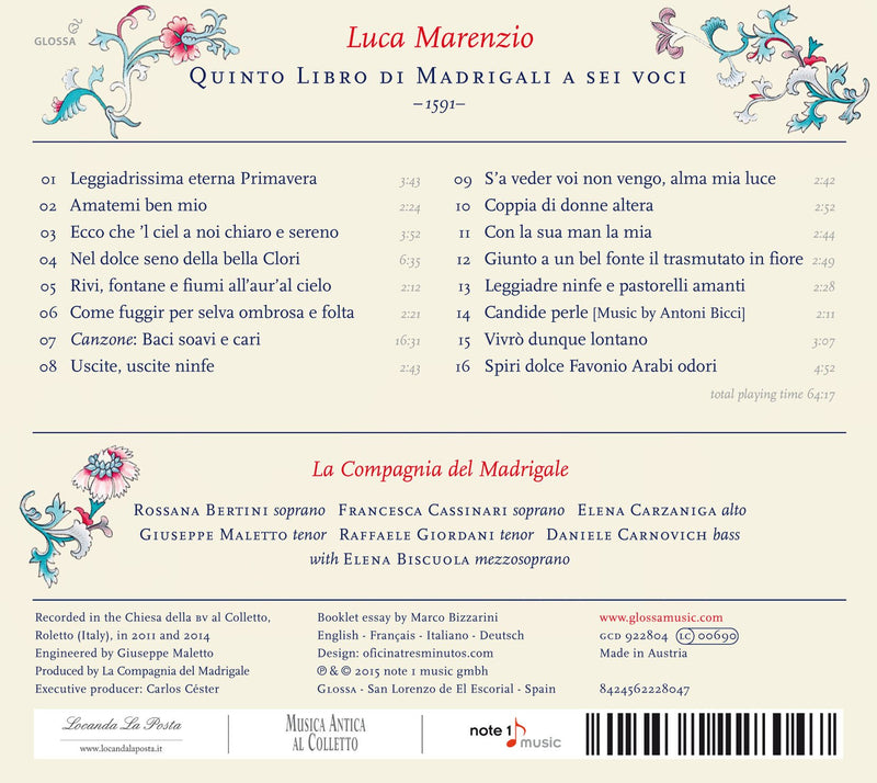 GlossaMarenzio: Quinto Libro di Madrigali a Sei Voci (1591) / La Compagnia del Madrigale