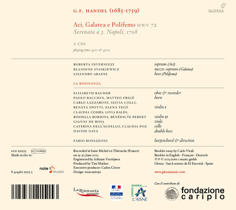 GlossaHandel: Aci, Galatea & Polifemo / Invernizzi, Bonizzoni, La Risonanza
