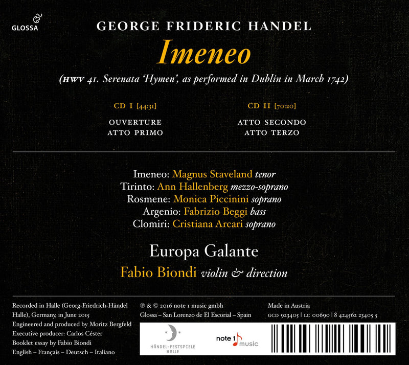 GlossaHandel: Imeneo / Biondi, Europa Galante