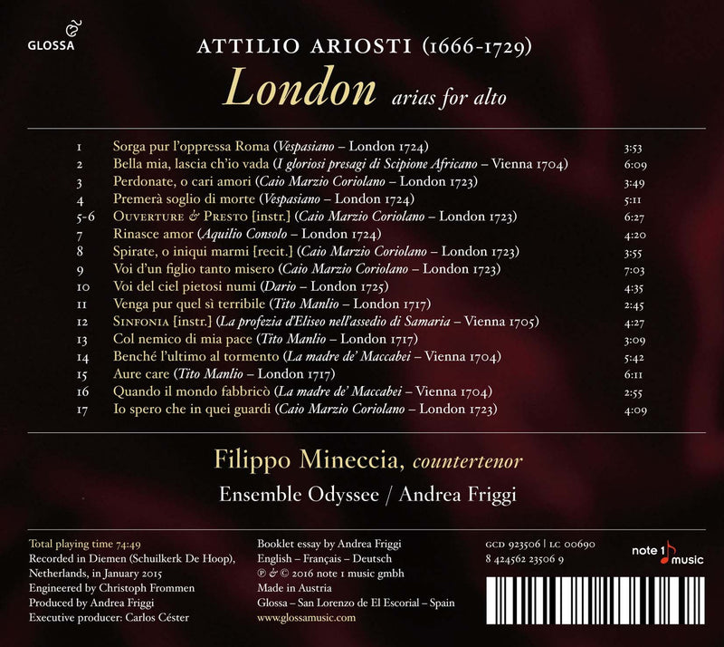 With his London album for Glossa, Florentine countertenor Filippo Mineccia has constructed a compelling survey of arias written for the European stage...