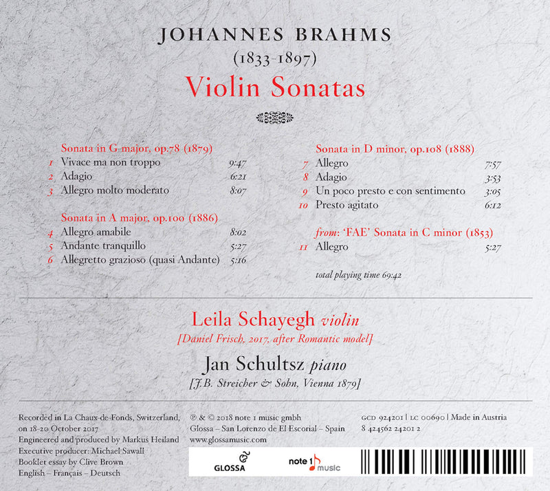 GlossaBrahms: Violin Sonatas / Schayegh, Schultsz