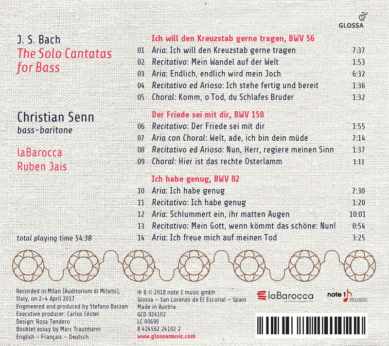 GlossaBach: The Solo Cantatas for Bass / Senn, Jais, laBarocca
