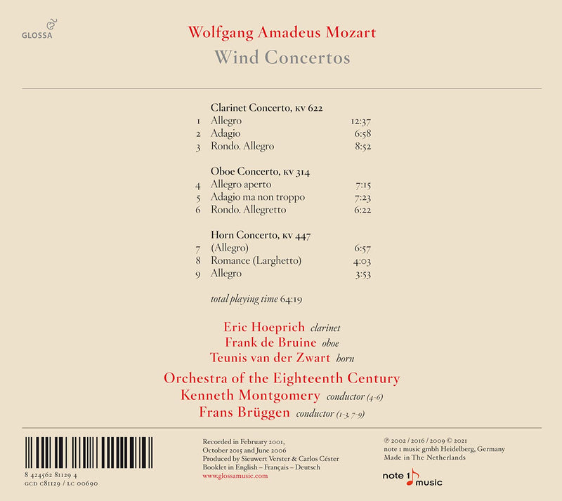 GlossaMozart: Wind Concertos / Brüggen, Orchestra of the Eighteenth Century
