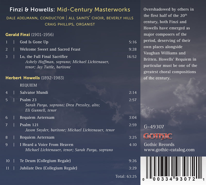 GothicFinzi & Howells: Mid-Century MasterworksHerbert Howells and Gerald Finzi , like most other British composers of their generation, were eclipsed by the rapid rise to international...