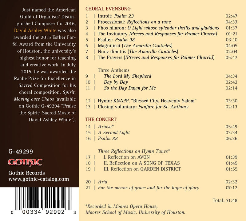 GothicSo the Night Fall: Music of David Ashley WhiteDavid Ashley White, the composer to whom this album is devoted, has received much recent success. In 2015 he was awarded the...