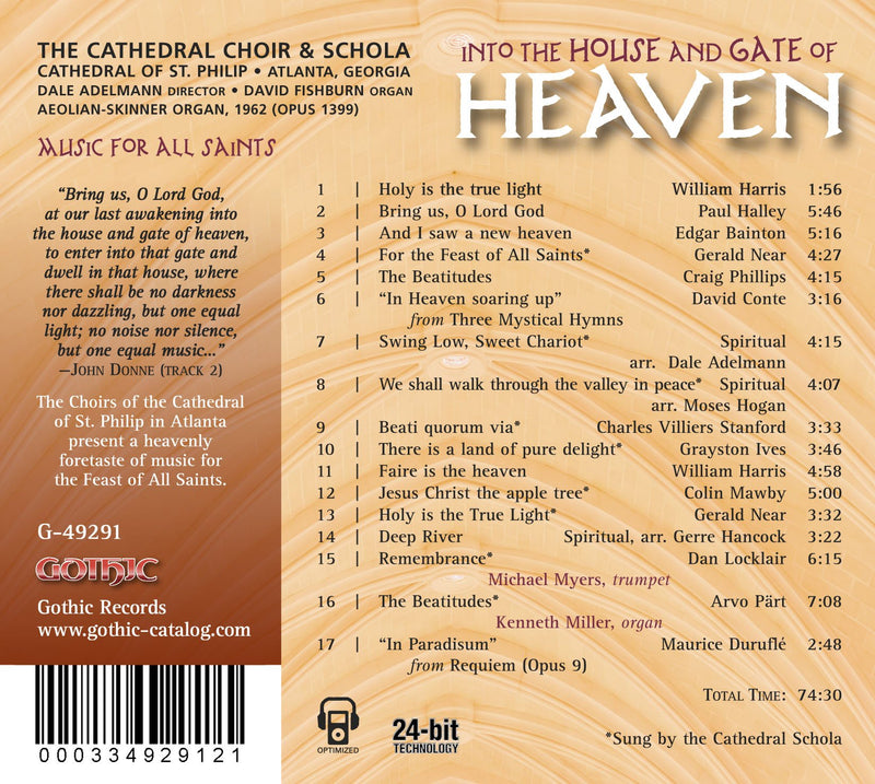 GothicInto the House and Gate of HeavenThe Anglican musical tradition is rich with music for All Saints Day. The choirs of St. Philips Cathedral in Atlanta, under the...