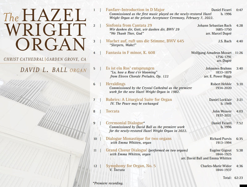 Few pipe organs in history have received as much attention as the iconic “Hazel.” David Ball’s performance takes full advantage of this...