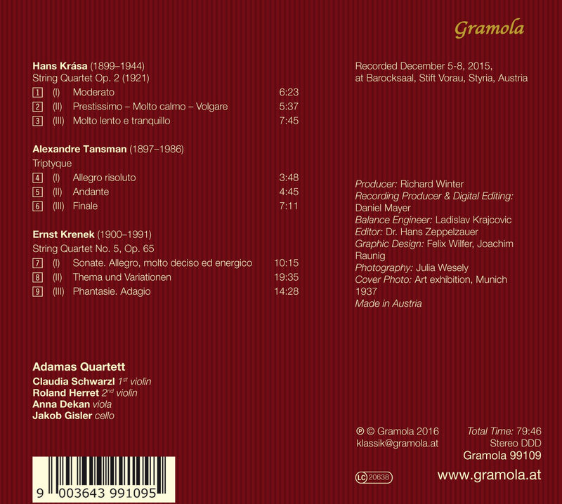 Gramola RecordsKrása, Tansman & Krenek: Works for String Quartet