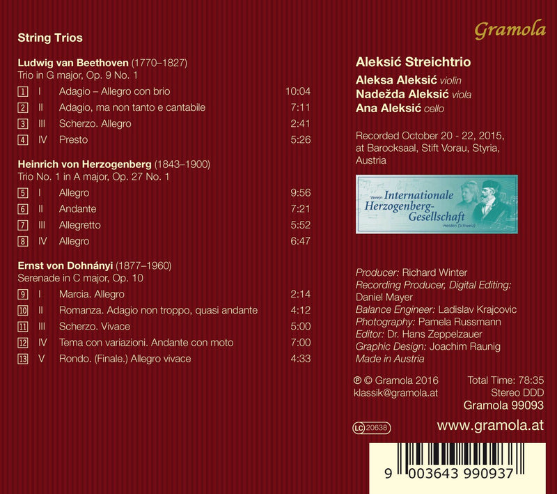 On SaleGramola RecordsBeethoven, Herzogenberg & Dohnányi: String Trios