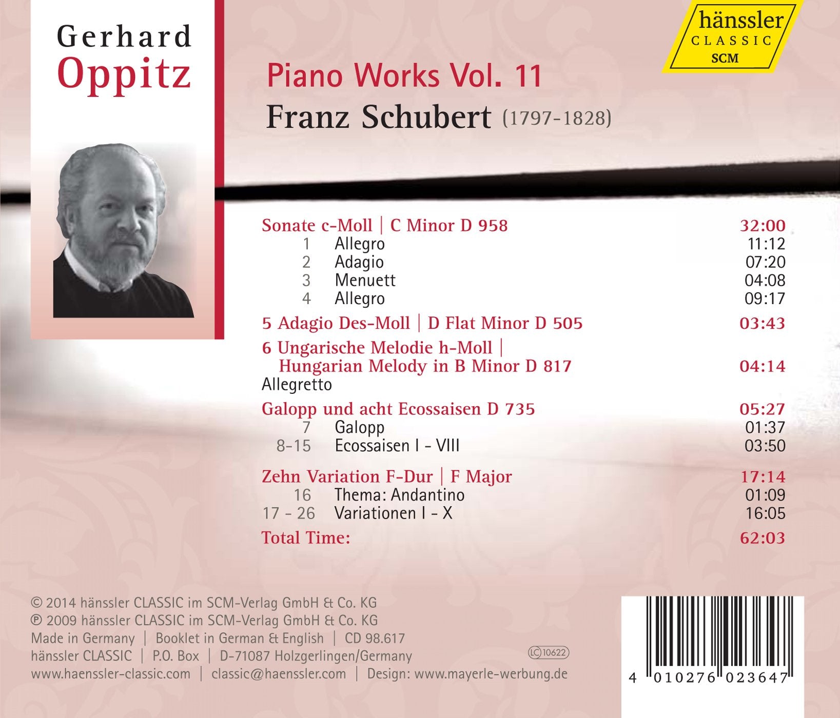 • 11th installment in Gerhard Oppitz's recordings of Schubert's piano works • Includes the D 958 c minor sonata; first of the...