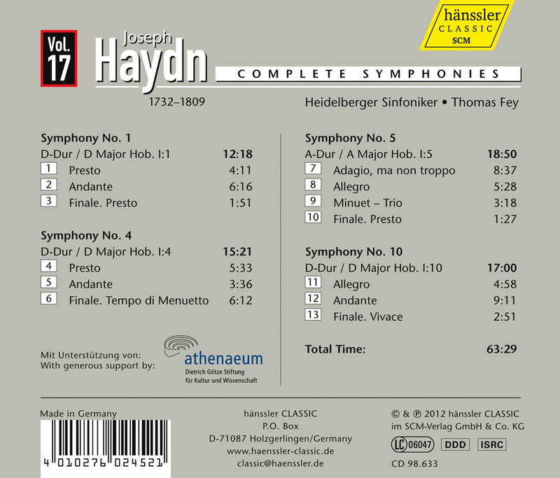 Haenssler ClassicHaydn: Complete Symphonies Vol 17 / Fey, Heidelberg Symphony