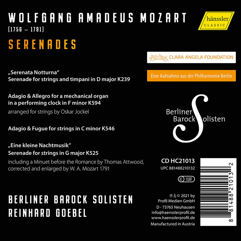 Haenssler ClassicMozart: Serenades / Berlin Baroque Soloists, Goebel