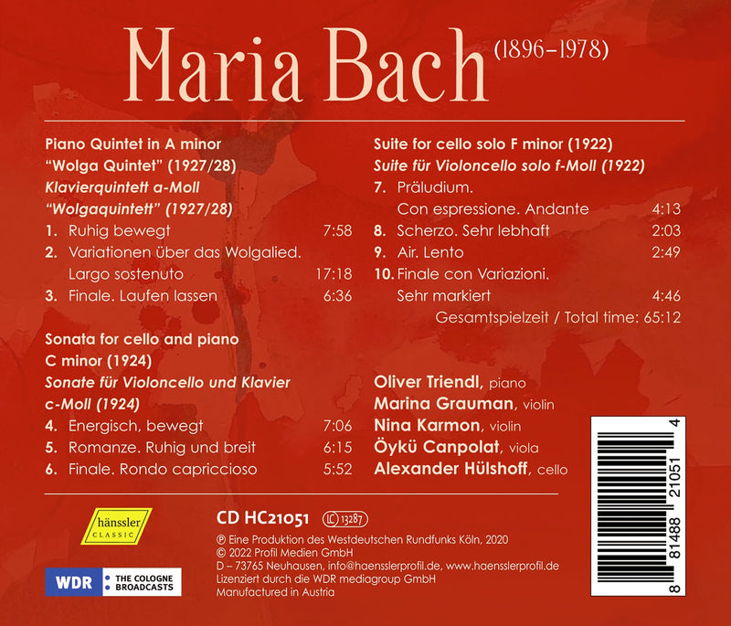 On SaleHaenssler ClassicMaria Bach: Piano Quintet & Cello Music / Hülshoff, Canpolat, Karmon, Triendl, Grauman