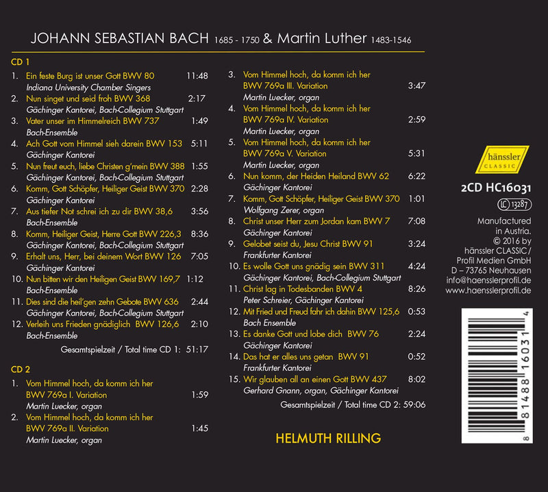 Haenssler ClassicEin feste Burg ist unser Gott / Rilling, Bach Collegium Stuttgart