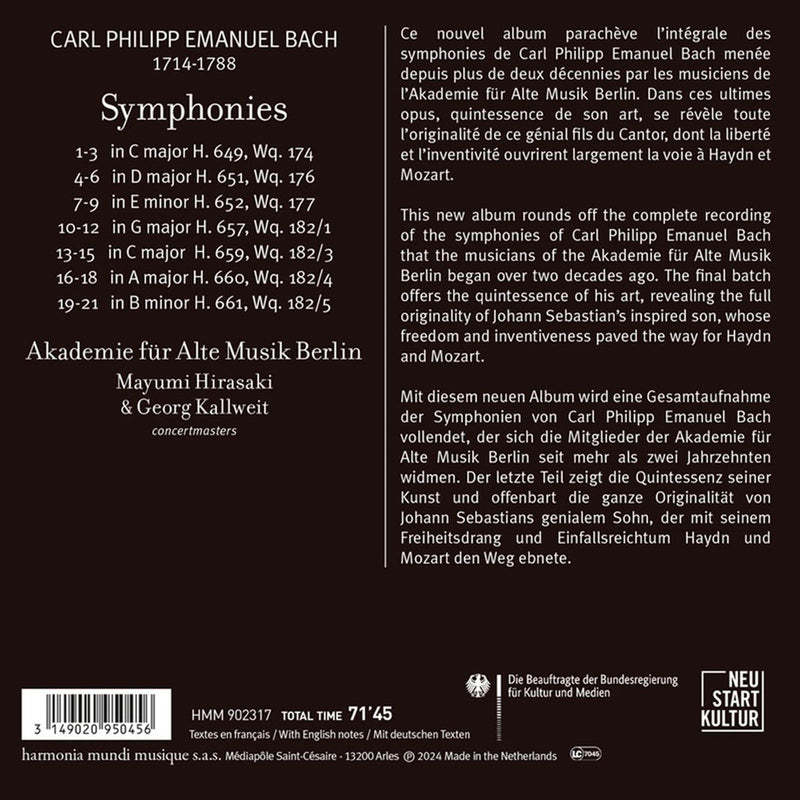This new album rounds off the complete recording of the symphonies of Carl Philipp Emanuel Bach that the musicians of the Akademie...