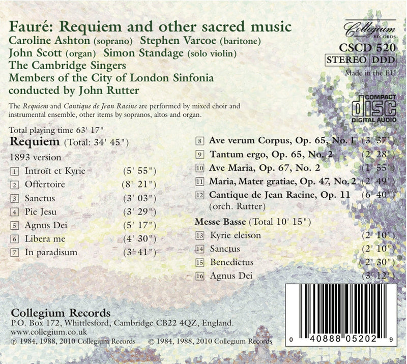 Collegium RecordsFaure: Requiem & Other Choral Music / Rutter, Cambridge Singers