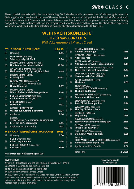 On SaleNaxos AudioVisualWeihnachtskonzerte (Christmas Concerts) / Marcus Creed, SWR Vocal Ensemble
