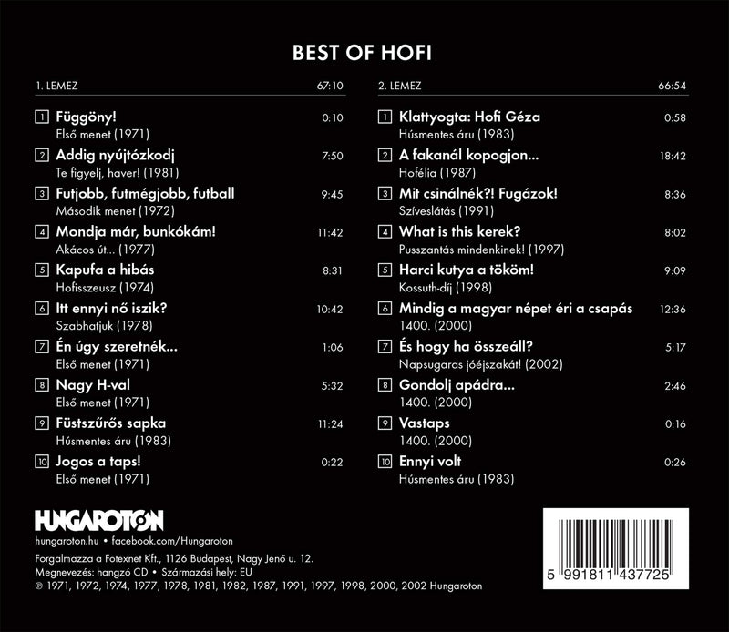 HungarotonBEST OF HOFIThis new release compiles the very best recordings from Hofi Geza, Hungarian actor and comedian. The most popular Hungarian parodist, he had...