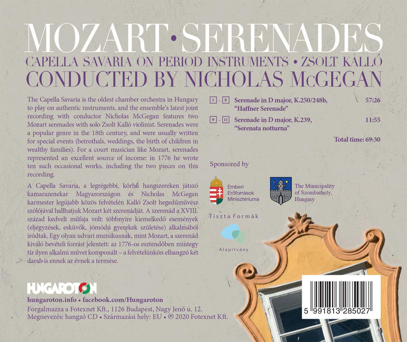 HungarotonMozart: Serenades Nos. 6 & 7The Capella Savaria is the oldest chamber orchestra in Hungary to play on authentic instruments, and the ensemble's latest joint recording with...