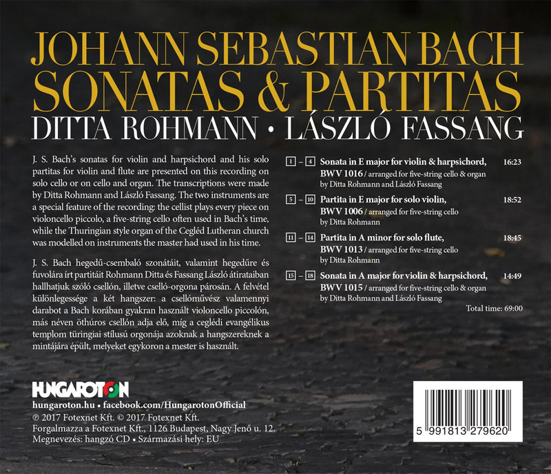 HungarotonBach: Sonatas & Partitas / Rohmann, FassangJ. S. Bach’s sonatas for violin and harpsichord and his solo partitas for violin and flute are presented on this recording on...