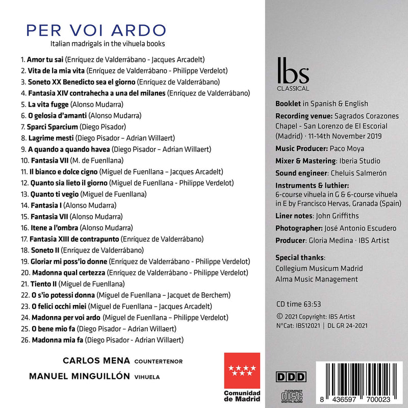 IBS ClassicalPer voi ardo - Italian Madrigals / Carlos Mena, Manuel Minguillon