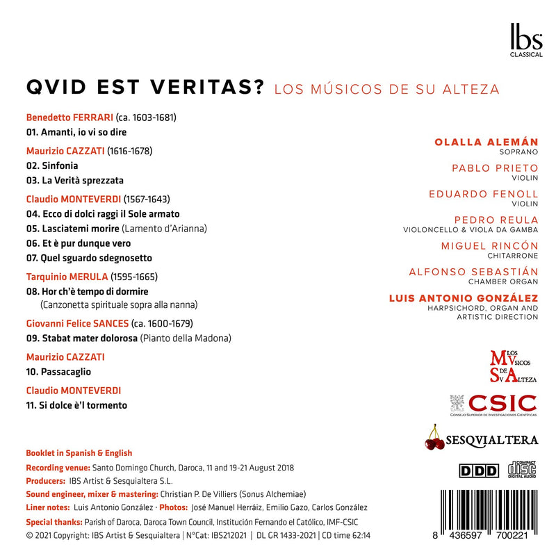 On SaleIBS ClassicalQvid est Veritas / Alemán, González, Los Musicos de Su Alteza