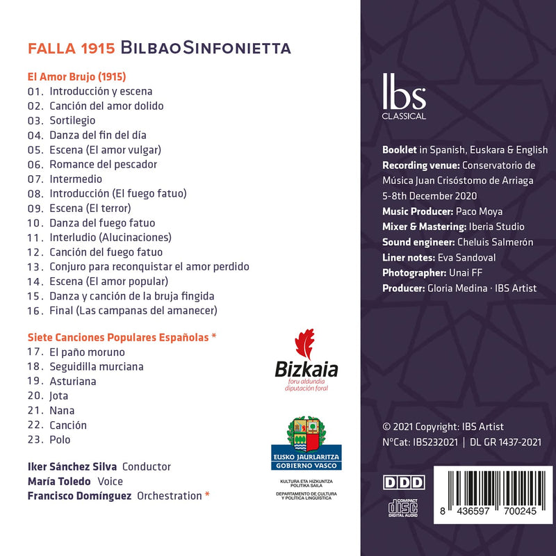 IBS ClassicalFalla 1915: Amor Brujo & 7 Canciones / Silva, Toledo, Bilbao Symphony Orchestra