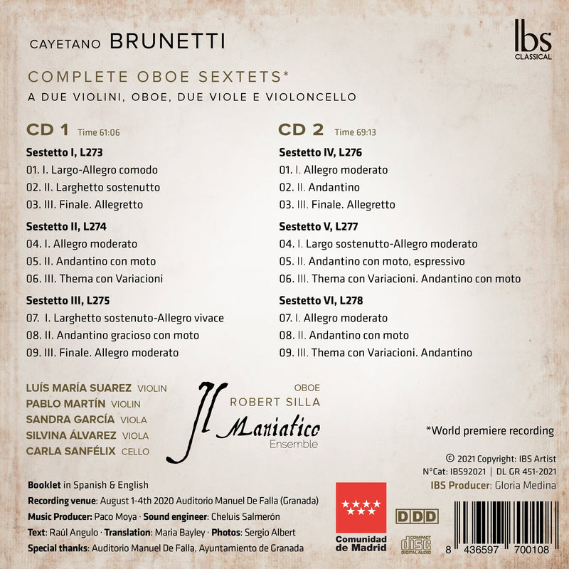 IBS ClassicalBrunetti: Compete Oboe Sextets / Silla, Il Maniatico Ensemble