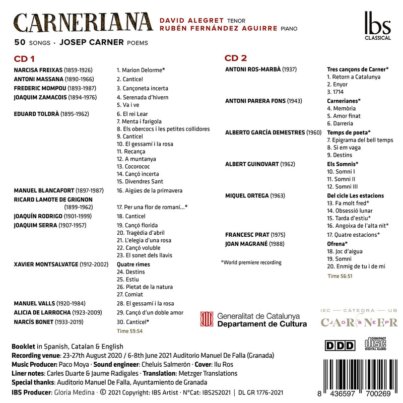 In the fifty songs we find in Carneriana, so carefully interpreted, David Alegret invites us dive into a poetic and musical universe...
