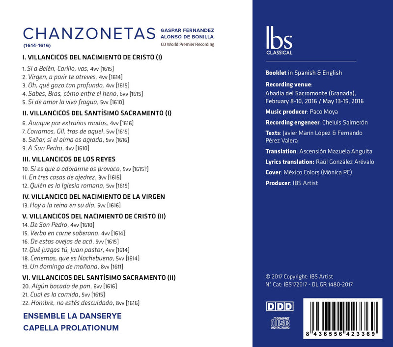 IBS ClassicalFernandes: ChanzonetasThe selection of villancicos included in this recording forms a specific collection in the Cancionero. Alonso de Bonilla’s texts are distinguished by...