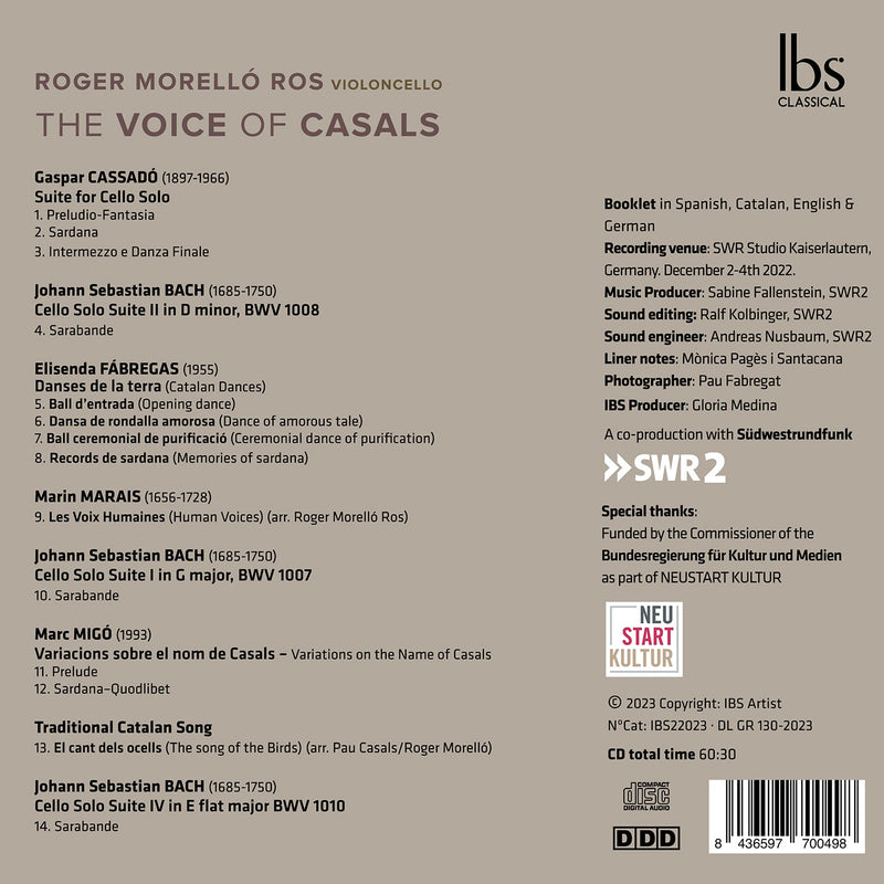 IBS ClassicalBach, Cassadó, Fabregas, Marais & Migo: The Voice of Casals / Morelló Ros