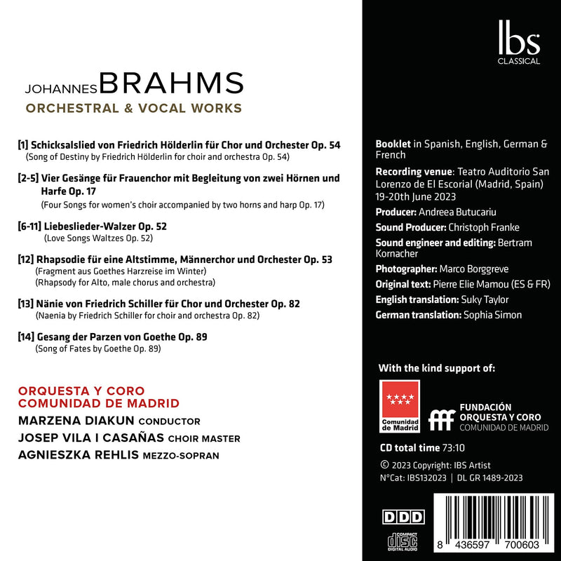 IBS ClassicalBrahms: Orchestral & Vocal Works / Diakun, Orquesta Comunidad de Madrid