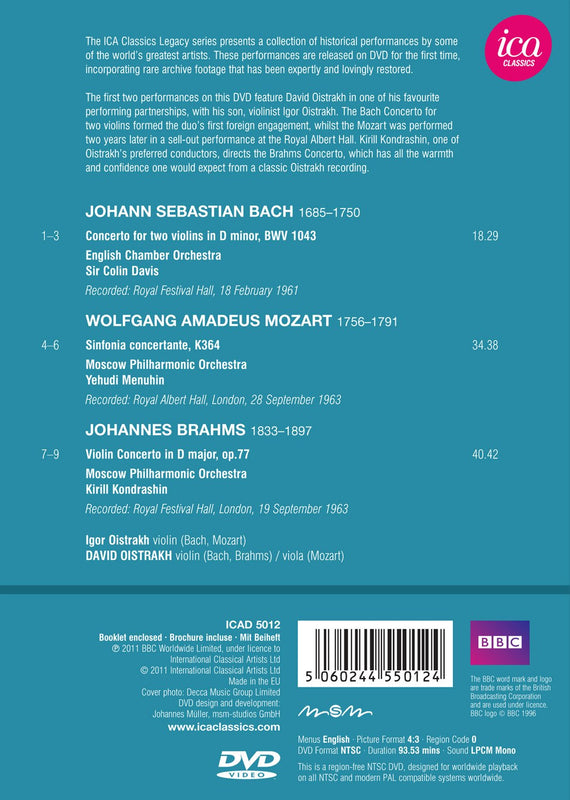 David Oistrakh and Igor Oistrakh perform in this 1961 recording of the Bach. Sir Colin Davis conducts the Moscow Philharmonic Orchestra with...