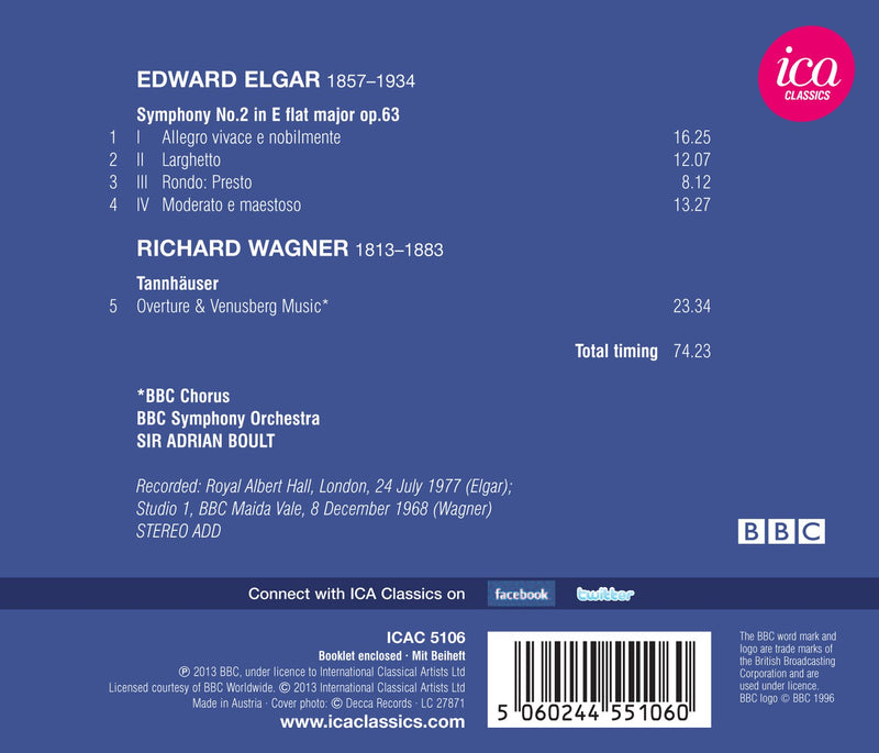 On SaleICA ClassicsElgar: Symphony No. 2 - Wagner: Tannhäuser Overture & VenusbBoult was very closely associated with Elgar's music throughout his career and recorded the Second Symphony five times. This live Proms performance...