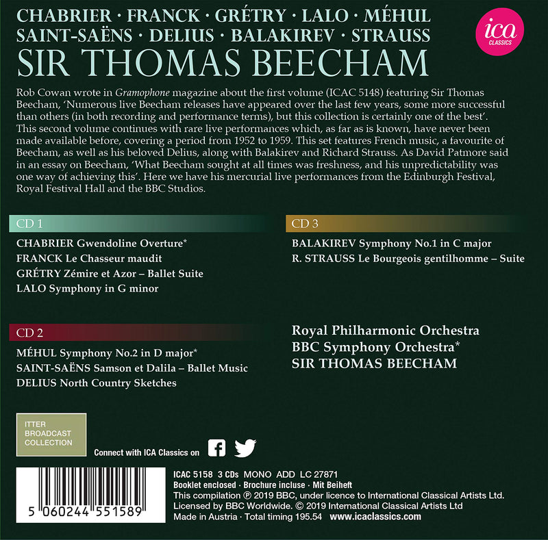 ICA ClassicsSir Thomas Beecham, Vol. 2Rob Cowan wrote in Gramophone about the first volume featuring Sir Thomas Beecham: 'numerous live Beecham releases have appeared over the last...