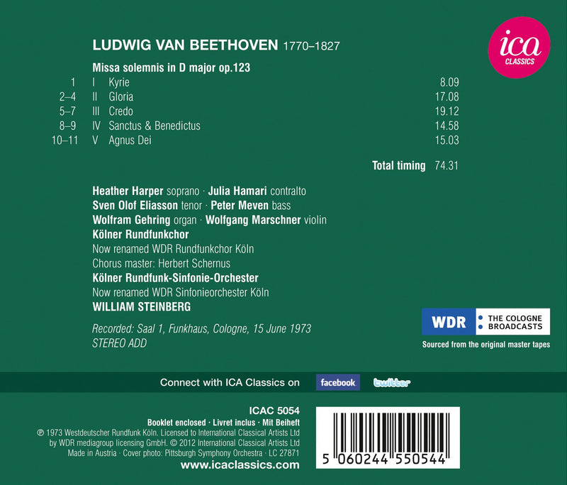 ICA ClassicsBeethoven: Missa SolemnisWilliam Steinberg (1899–1978), a native of Cologne who spent almost all his career in the USA, was known principally as Music Director...