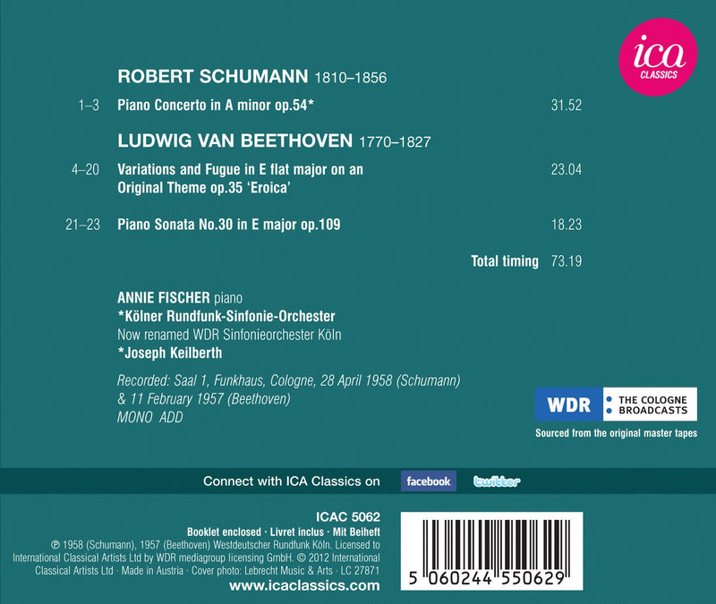 ICA ClassicsSchumann: Piano Concerto in A Minor - Beethoven: Eroica VariSviatoslav Richter’s comment that Hungarian-born Annie Fischer (1914–1995) was ‘a great artist imbued with a spirit of greatness and genuine profundity’ is...