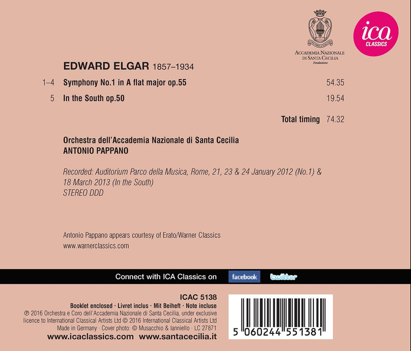 On SaleICA ClassicsElgar: Symphony No. 1, Op. 55 & In the South, Op. 50 "AlassiThis new release from ICA Classics presents the first recording of Antonio Pappano conducting Elgar with his Orchestra dell’Accademia Nazionale di Santa...