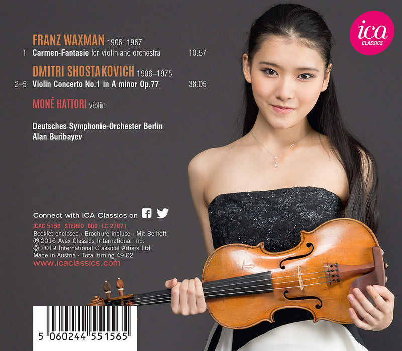 ICA ClassicsShostakovich: Violin Concerto No. 1 - Waxman: Carmen FantasiBorn in Tokyo in 1999, Mone Hattori came from a musical family. After studies in Japan with Auguri Suzuki and Yasuko Ohtani...