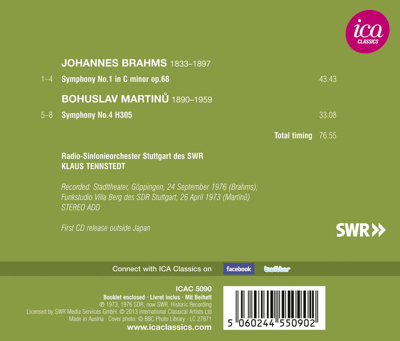 ICA ClassicsBrahms: Symphony No. 1 - Martinu: Symphony No. 4With stunning accounts of Brahms and Mahler, this recording marks an exciting, new relationship between ICA Classics and the SWR in Stuttgart,...