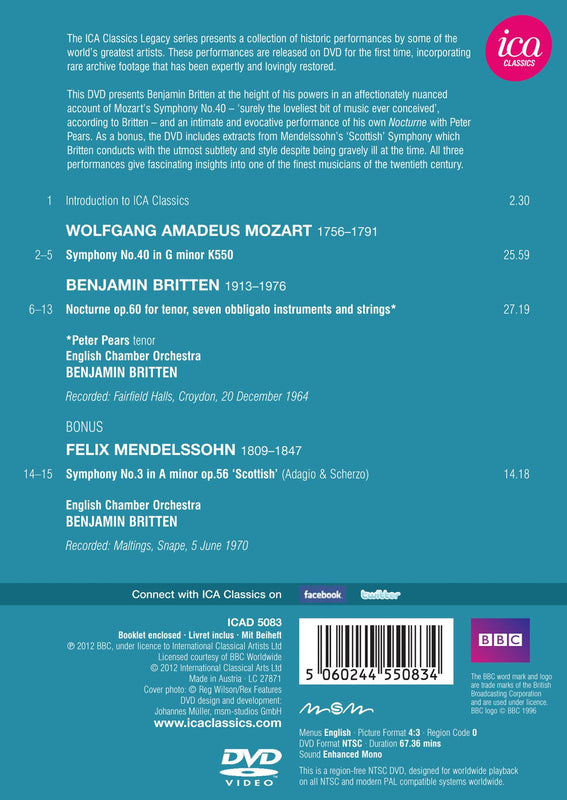 On SaleICA ClassicsMozart: Symphony No. 40 / Britten: NocturneThese revelatory films feature Britten with his favored English Chamber Orchestra performing at two very different times of his life, with equal...