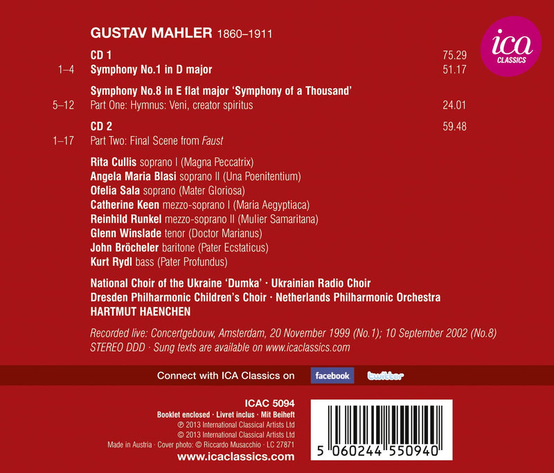 On SaleICA ClassicsMahler: Symphonies Nos. 1 & 8Hartmut Haenchen was born in Dresden in 1943 and from the moment of his 1971 Carl Maria von Weber Competition victory onward,...
