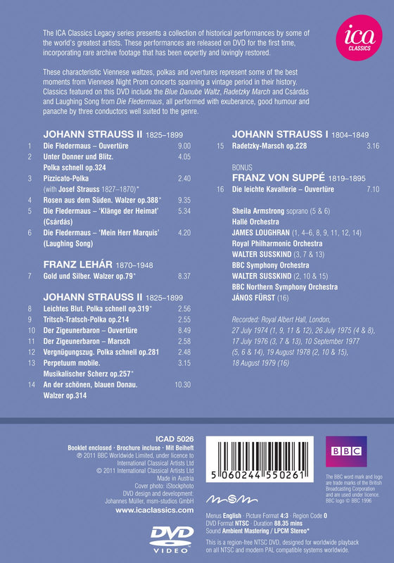 ICA ClassicsViennese Night at the PromsCharacteristic Viennese waltzes, polkas, and overtures represent some of the best moments from Viennese Night Prom concerts spanning a vintage period in...