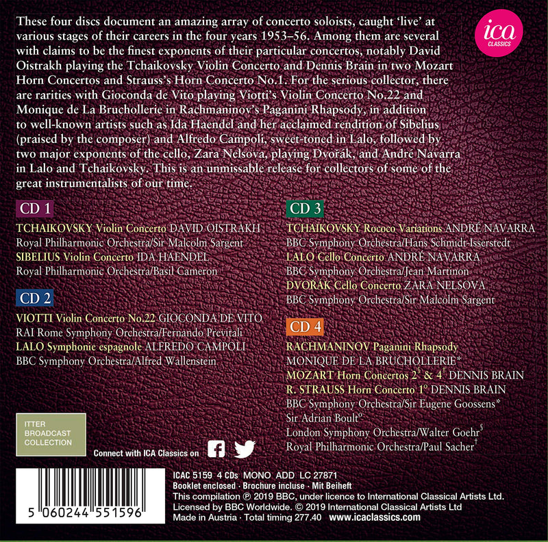 This release documents an amazing array of concerto soloists, caught at various stages of their careers in the four years 1953-1956. Among...