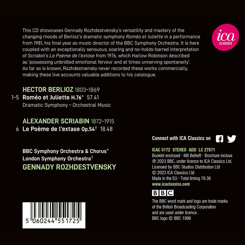 On SaleICA ClassicsBerlioz: Romeo et Juliette; Scriabin: Le Poeme de l’extase / Rozhdestvensky